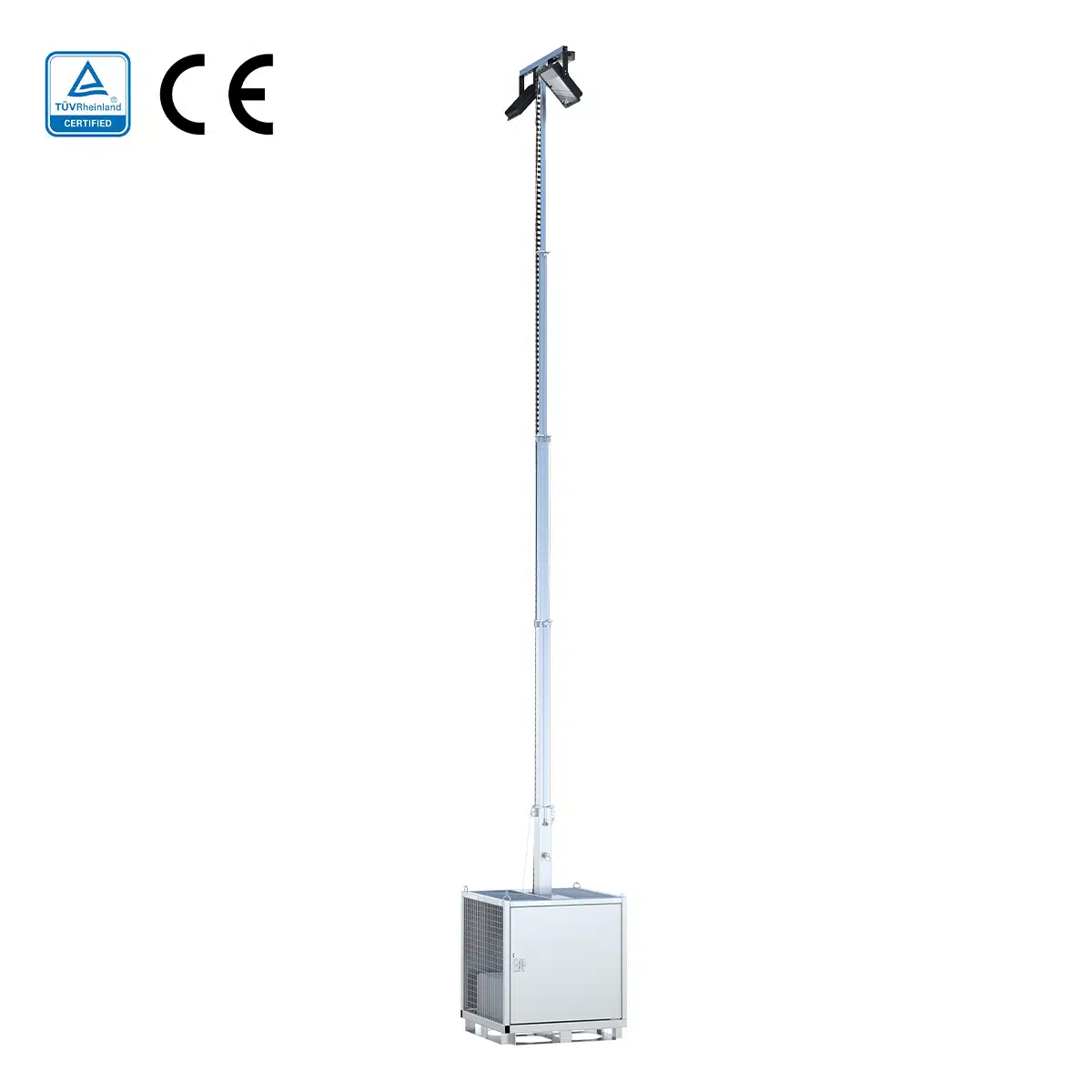Ein TÜV-Zertifikat bedeutet, dass ein ausfahrbarer Lichtmast umfangreichen Prüfungen unterzogen wurde und die spezifischen Normen des TÜV – einer renommierten deutschen Prüforganisation – erfüllt. Diese Zertifizierung bestätigt die Qualität und Sicherheit des Produkts nach den strengen Anforderungen des TÜV.